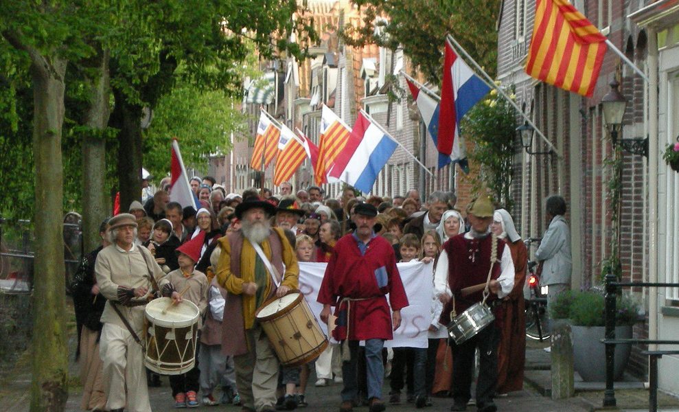De tocht voert u – samen met Ad-Hoc muzikanten en Dindua – ook weer terug naar het Stadhuis, waar omstreeks 16.30 uur het ‘Spaansgezinde bestuur’ wordt afgezet. Evenals voorgaande jaren verlenen de leden van het huidige stadsbestuur hun medewerking. Omstreeks 17.00 uur wordt het evenement , onder het genot van een oranjebitter/ oranje limonade, feestelijk afgesloten. In verband met een expositie, vóór het bordes van het Stadhuis.