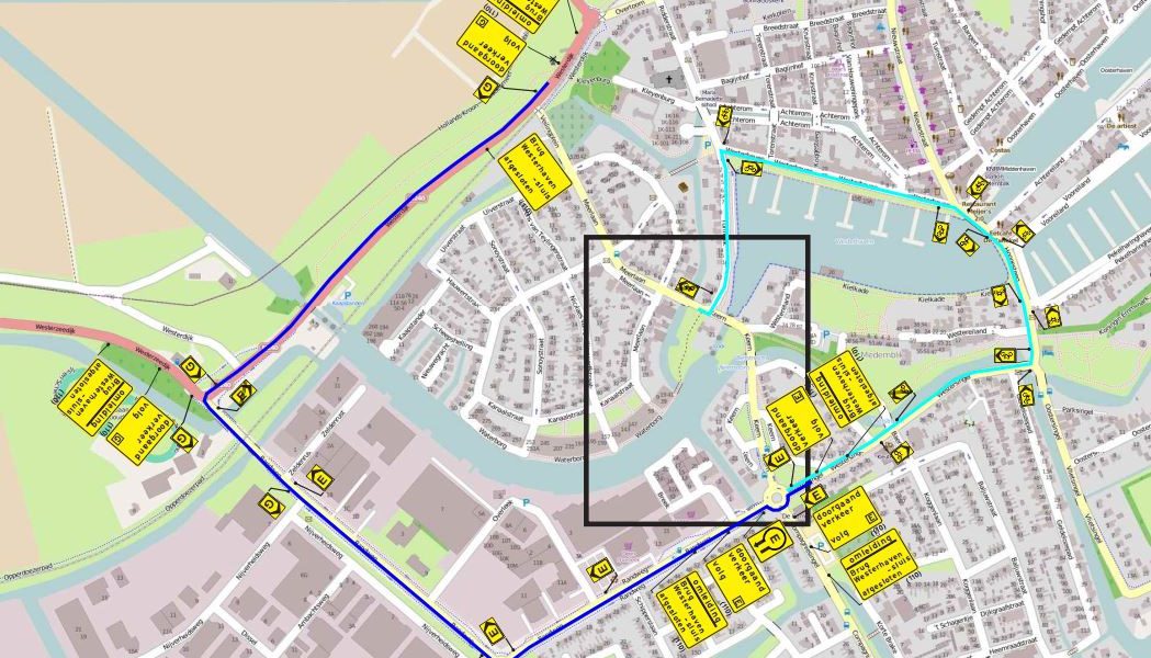 De reistijd kan langer worden. Op het bijgaande kaartje staat de omleidingsroute aangegeven. De bus route wordt ook aangepast. Dit is binnenkort te vinden via www.connexxion.nl/nl/reisinformatie/actuele-reisinformatie.