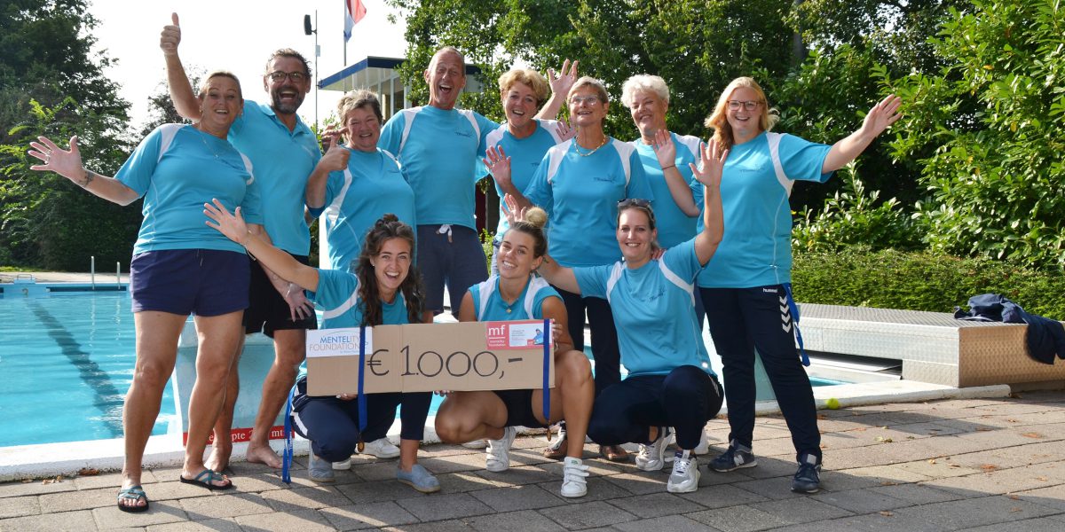 Door haar fysieke en mentale omgang met kanker zijn wij gesterkt om de beweging die we hebben ingezet te vervolmaken.” Met veel enthousiasme zijn jong en oud op zoek gegaan naar sponsoren en hebben 4x hun baantjes gezwommen. Natuurlijk werd deze inspanning beloond met een medaille. Dit jaar hadden wij zelfs deelnemers die meer dan 40x mee gedaan hebben! Wat een inzet!! Door ieder zijn prestatie mogen wij het fantastische bedrag van €1000,- schenken aan de Mentelity foundation. Bedankt iedereen die zijn of haar steentje bijgedragen heeft!