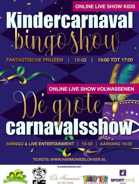 In de middag is er een geweldige carnavalsbingo voor de kinderen aanvang 15.00 uur en in de avond vanaf 19.30 uur een geweldige interactieve Swingo dit allemaal in het carnavalsweekend op zaterdagavond 13 februari 2021. Lees verder voor meer info.