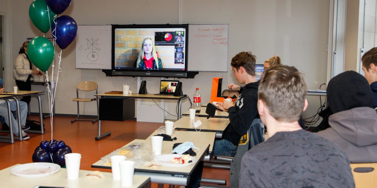 In plaats van een eindevent waarbij alle deelnemers op één locatie zijn werden de leerlingen, docenten en bedrijven op de verschillende scholen verbonden in een hybride event. Docenten zaten met hun klassen met taart van deelnemend bedrijf Spataro in de digitale sessie en veel groepjes hebben na afloop nog met de ondernemers gesproken om uitgebreid voor te leggen wat zij hebben bedacht en gedaan.