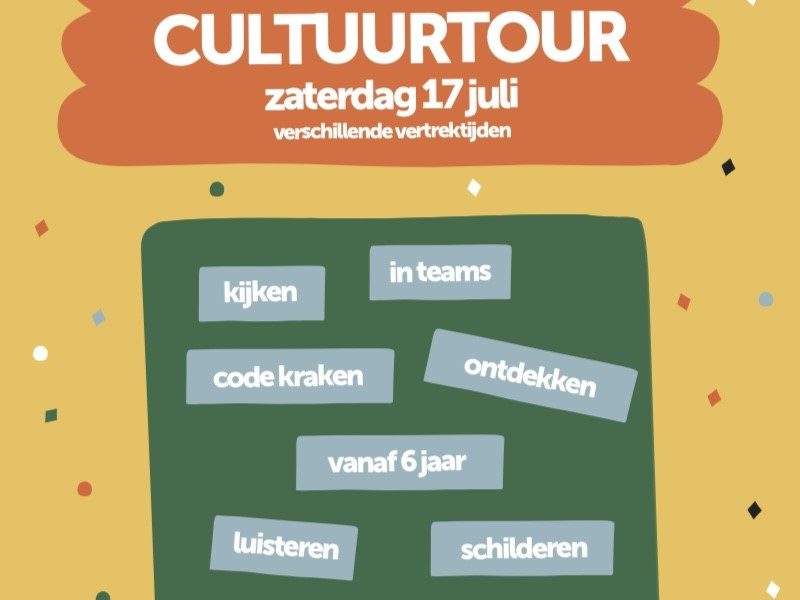 Ga mee op avontuur door Enkhuizen en kraak de Cultuurcode? Gewapend met een geheime envelop met een kaart en aanwijzingen ga je, samen met je ouders, broer, zus, opa, oma of vriendjes op jacht in Enkhuizen. Onderweg kom je allerlei toffe dingen tegen die met cultuur te maken hebben: muziek, kunst, erfgoed en nog veel meer! Op elke stop is er wat te doen en ontvang je een stukje van de code. De start en de finish zijn bij de Drom en daar krijg je na afloop een drankje en wat lekkers.
