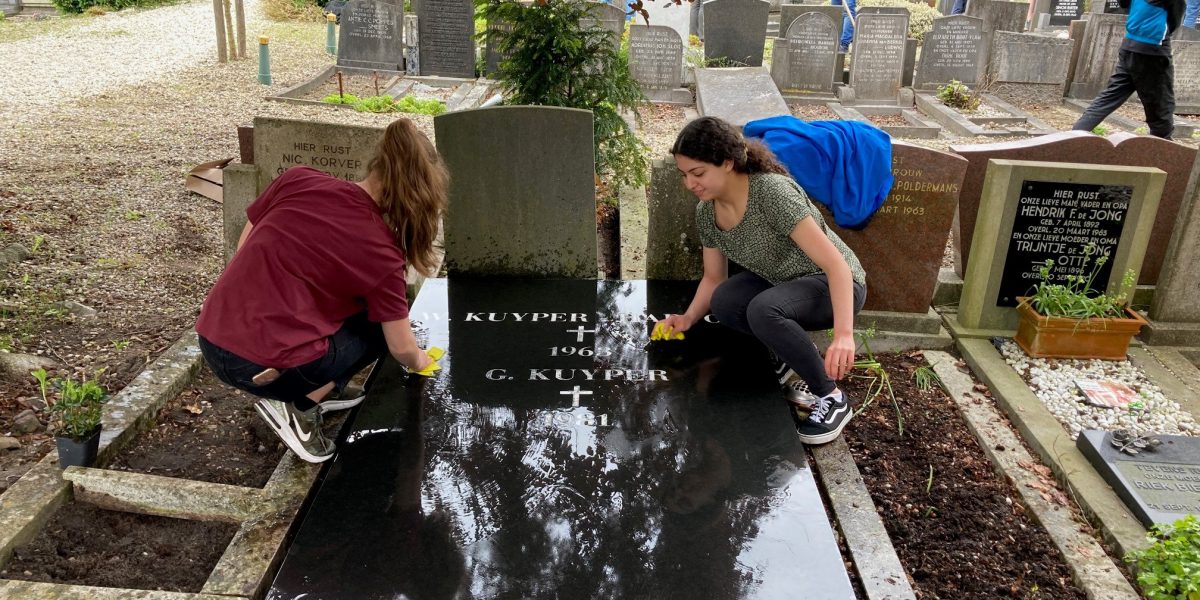 Ook Mila loopt een dagje mee bij Noppes: “Ik hou van tweedehandskleding! Helaas ben ik met mijn 15 jaar nog te jong om hier te kunnen werken, maar door NLdoet kan het nu toch! Super leuk!” Bij Begraafplaats Het Keern in Hoorn zijn maar liefst 30 vrijwilligers bezig met tuin- en schoonmaakklusjes. Hier heerst zeker geen grafstemming: jong en oud werkt met veel plezier aan het opknappen van de begraafplaats. Luna en Nadia doen dit als maatschappelijke stage. Nadia: “Ik hou van schoonmaken, dus vind dit leuk om te doen. Maar ook dankbaar. Als ik hier kom te liggen, zou ik het ook fijn vinden als iemand dit voor mij doet.” Dat het ook een beetje spannend is, merken we als een jongeman met een stukje bot aankomt. “Ik denk dat dit van een hand is”, zegt hij met glunderende ogen. Het is al zijn derde stukje bot dat hij gevonden heeft. Irene Laan en Rita Lodde van Stichting Vrienden Begraafplaats Hoorn zijn super blij met de enorme opkomst. Irene: “ Wij zijn echt heel blij met Vrijwilligerspunt. Wat een opkomst en geweldig om te zien dat zowel jong als oud wil meehelpen.”